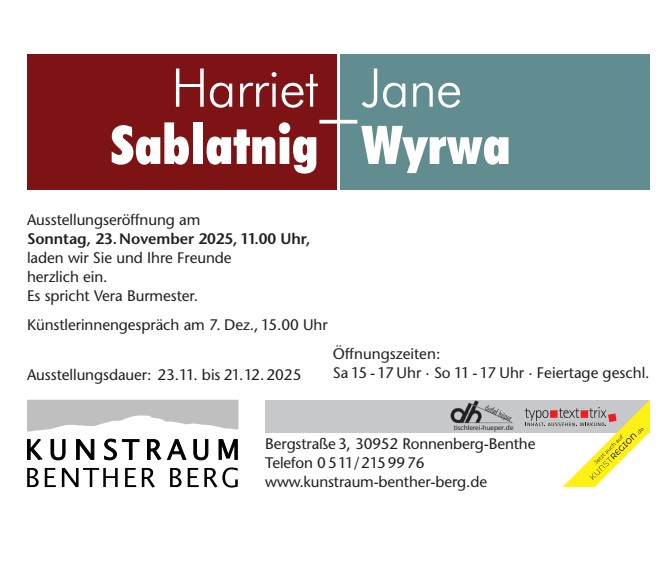 Die Einführungsrede wird Vera Burmester halten. Sie ist selbst Künstlerin und im Vorstand vom Kunstverein Imago e. V. in der Wedemark.
